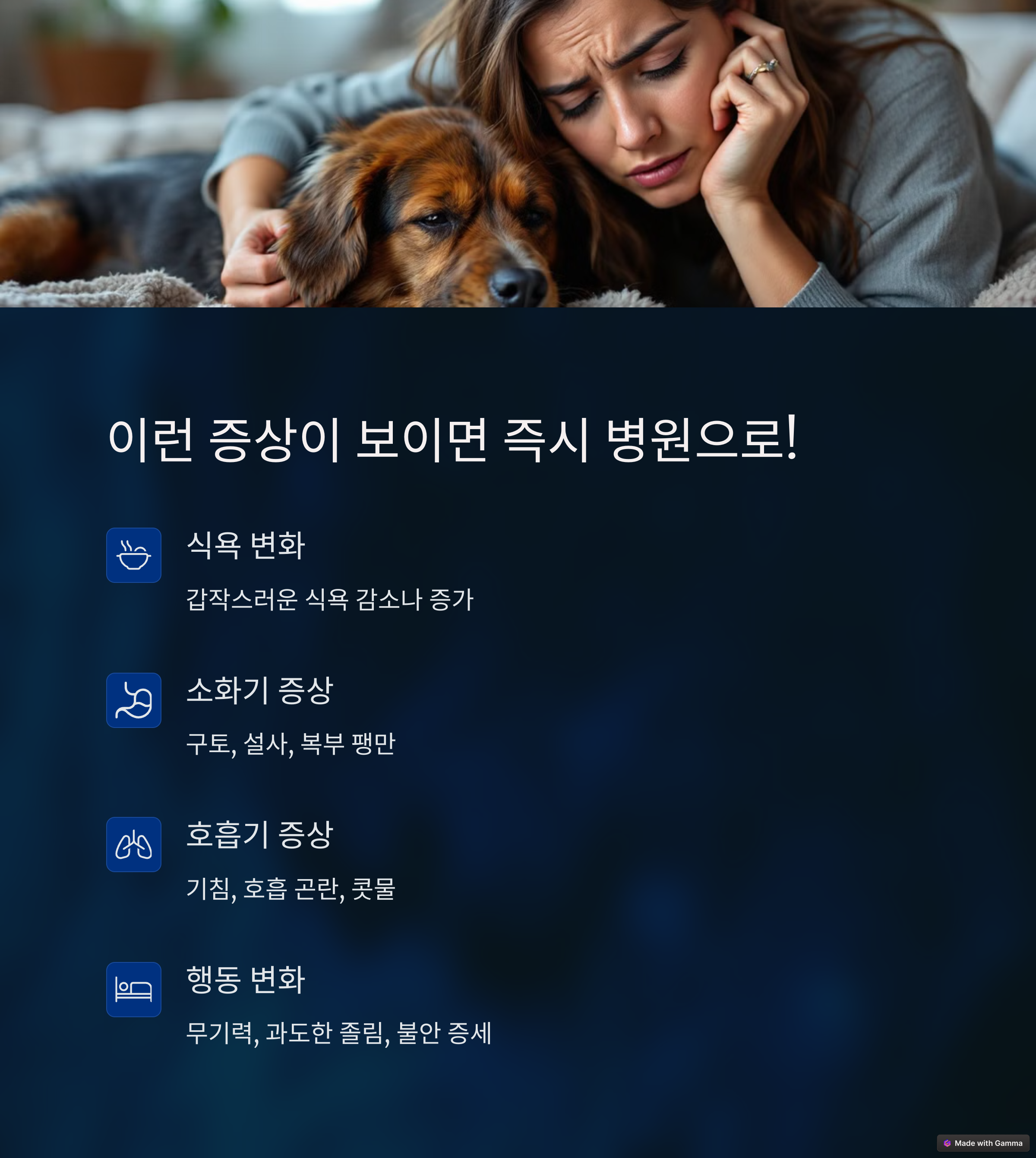 검진 시기가 아니어도 아래와 같은 증상이 보이면 즉시 병원에 가야 해요. 특히 갑작스러운 변화는 절대 무시하면 안 돼요.