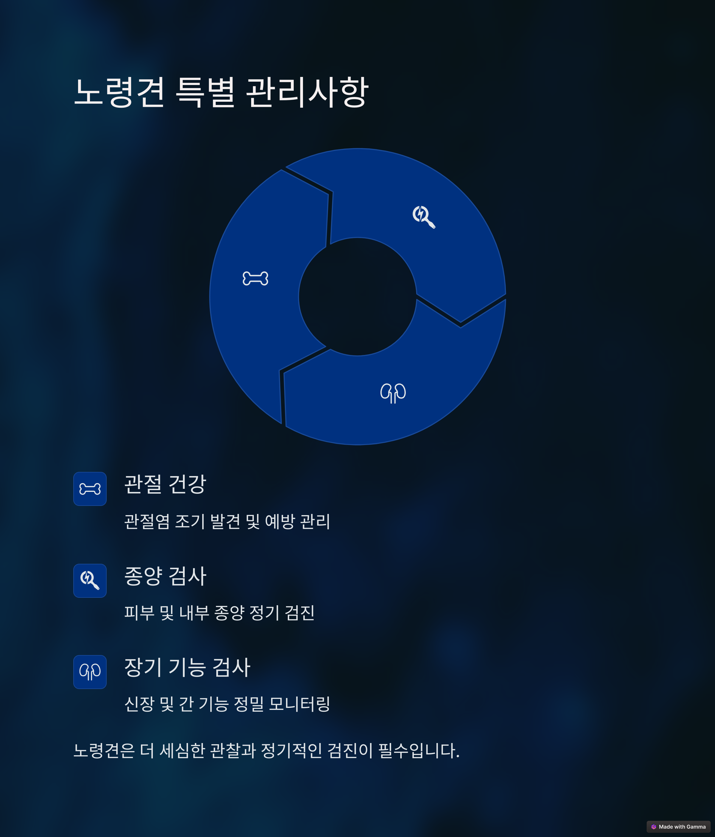 | 7세 이상(노견) | 6개월 간격 | 혈액검사, 심장·신장 집중 관리 |
