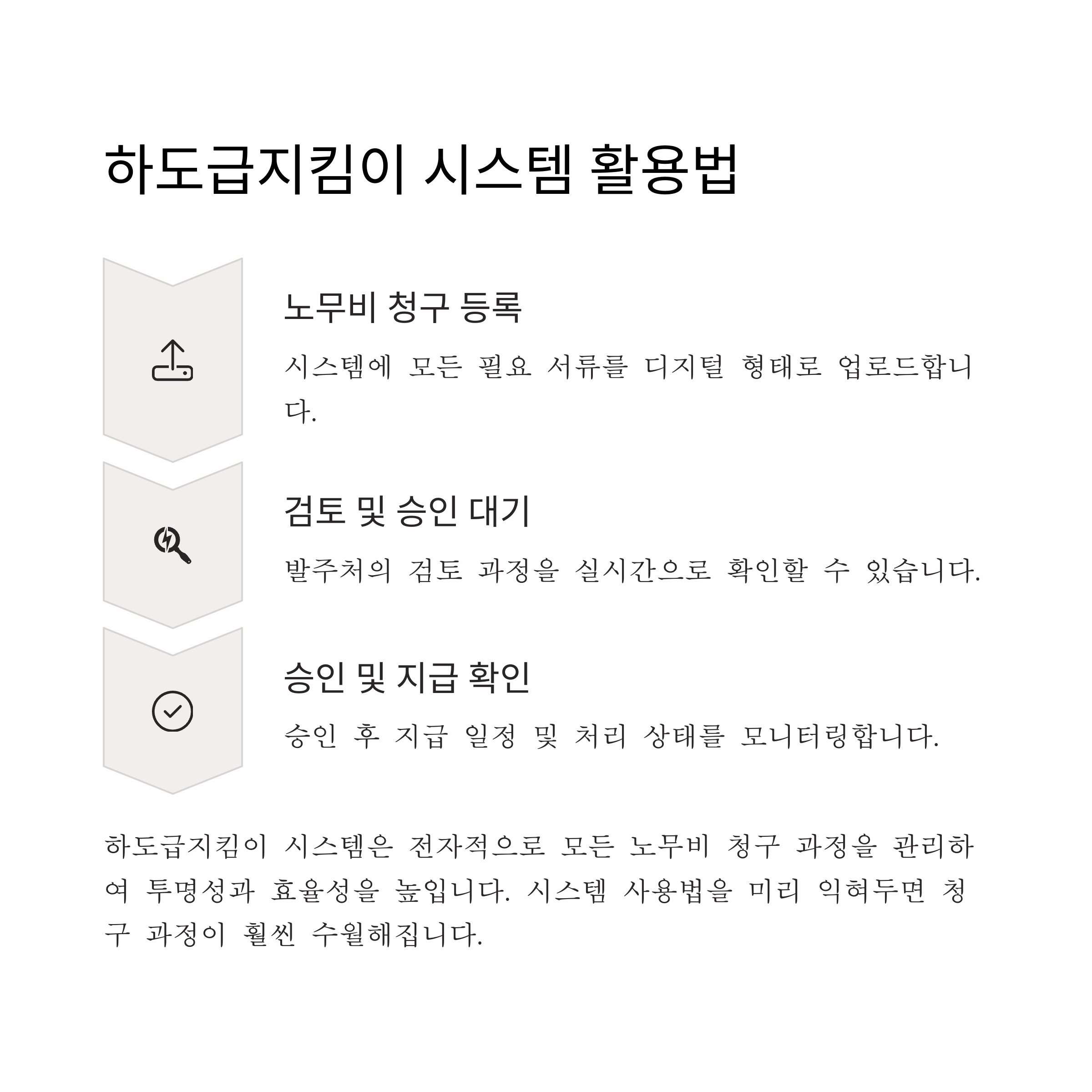 관급 건설공사의 원활한 진행을 위해서는 매월 정확한 노무비 청구가 선행되어야 합니다. 이를 위해 기본적인 청구서류 외에도 증빙자료, 보험료 완납증명서, 납세증명서, 지급내역서 등 다양한 서류가 요구됩니다. 문서의 정합성을 유지하고 제출일을 준수하는 것만으로도 수많은 문제를 예방할 수 있습니다. 특히 하도급이 포함된 경우에는 하도급지킴이 시스템을 통해 디지털 기반의 지급관리를 병행해야 하므로, 현장 담당자의 역할이 매우 중요해집니다. 이 글을 통해 청구서류에 대한 체계적인 정리가 되셨기를 바랍니다.