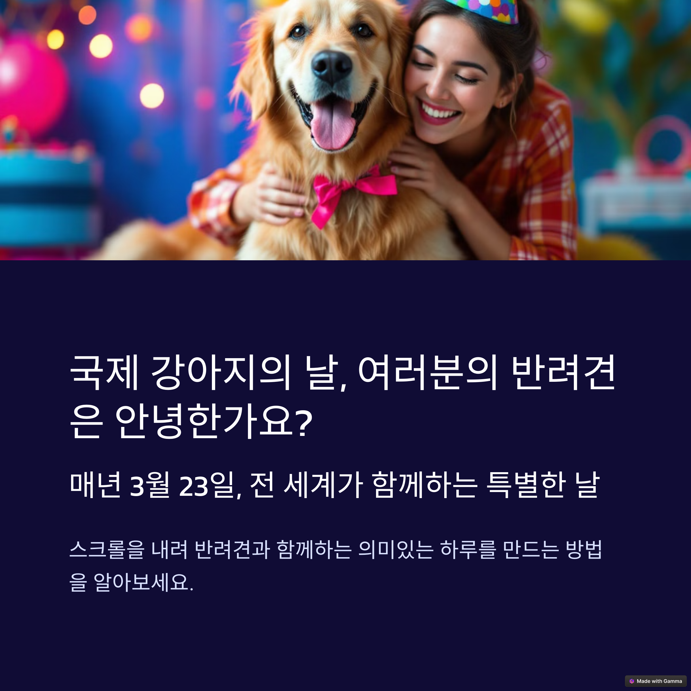 안녕하세요, 반려견을 사랑하는 여러분! 우리가 매일 함께하는 소중한 반려견들을 위한 특별한 기념일이 있다는 사실, 알고 계셨나요? 바로 국제 강아지의 날입니다. 이 날은 단순한 축제가 아니라, 반려견의 권리를 보호하고 유기견 문제에 대한 인식을 높이는 중요한 의미를 담고 있어요. 오늘은 국제 강아지의 날의 유래와 의미, 그리고 여러분이 사랑하는 반려견과 함께 특별한 하루를 보내는 방법에 대해 알아보겠습니다!