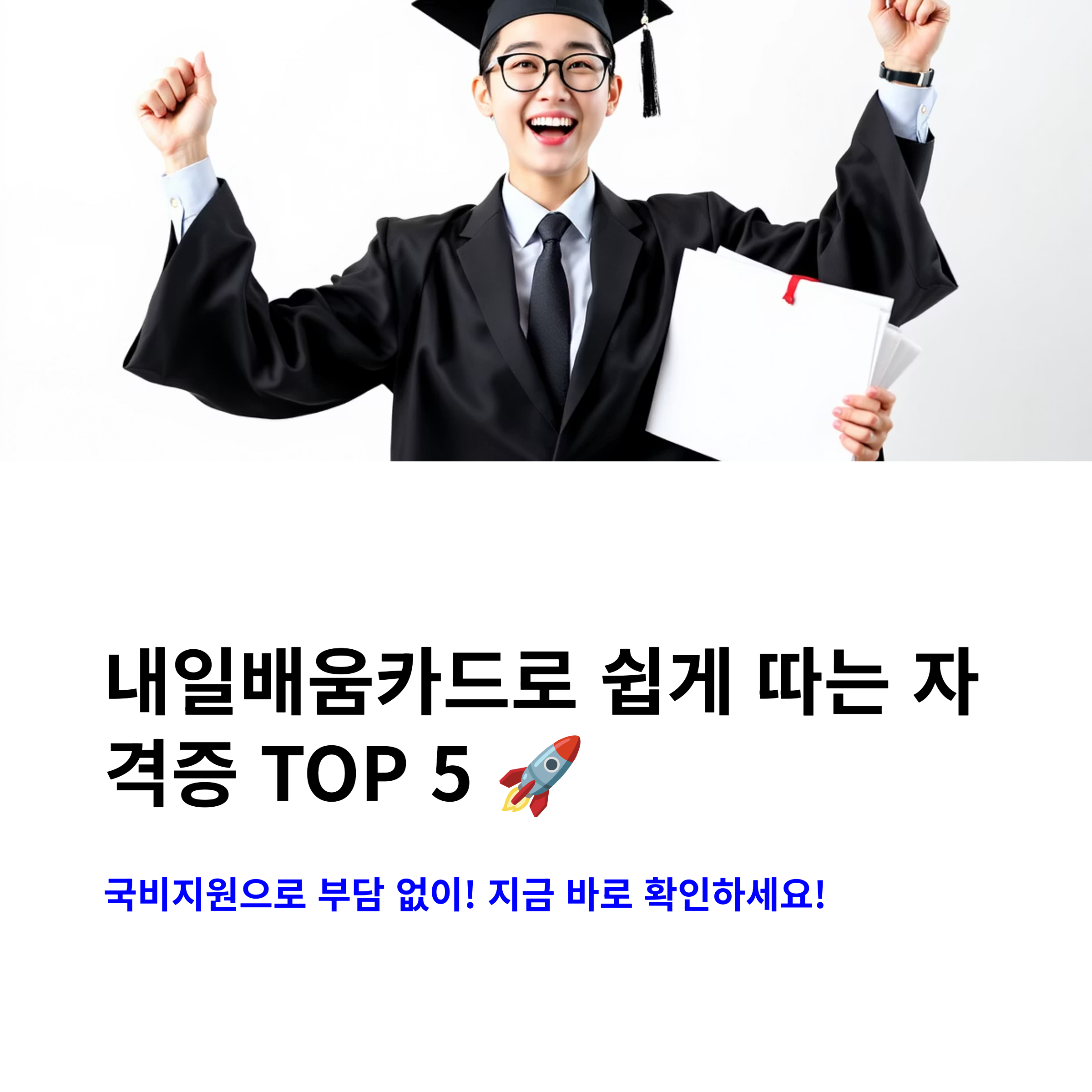 내일배움카드는 저렴한 비용으로 다양한 직업훈련을 지원하는 제도입니다. 여러 자격증을 단기간에 취득할 수 있는 기회를 제공하므로, 빠르게 취업을 준비하거나 실무 역량을 쌓고자 하는 분들에게 인기가 많죠. 아래에서는 내일배움카드로 쉽게 따기 좋은 자격증 TOP 5를 소개해드릴게요.