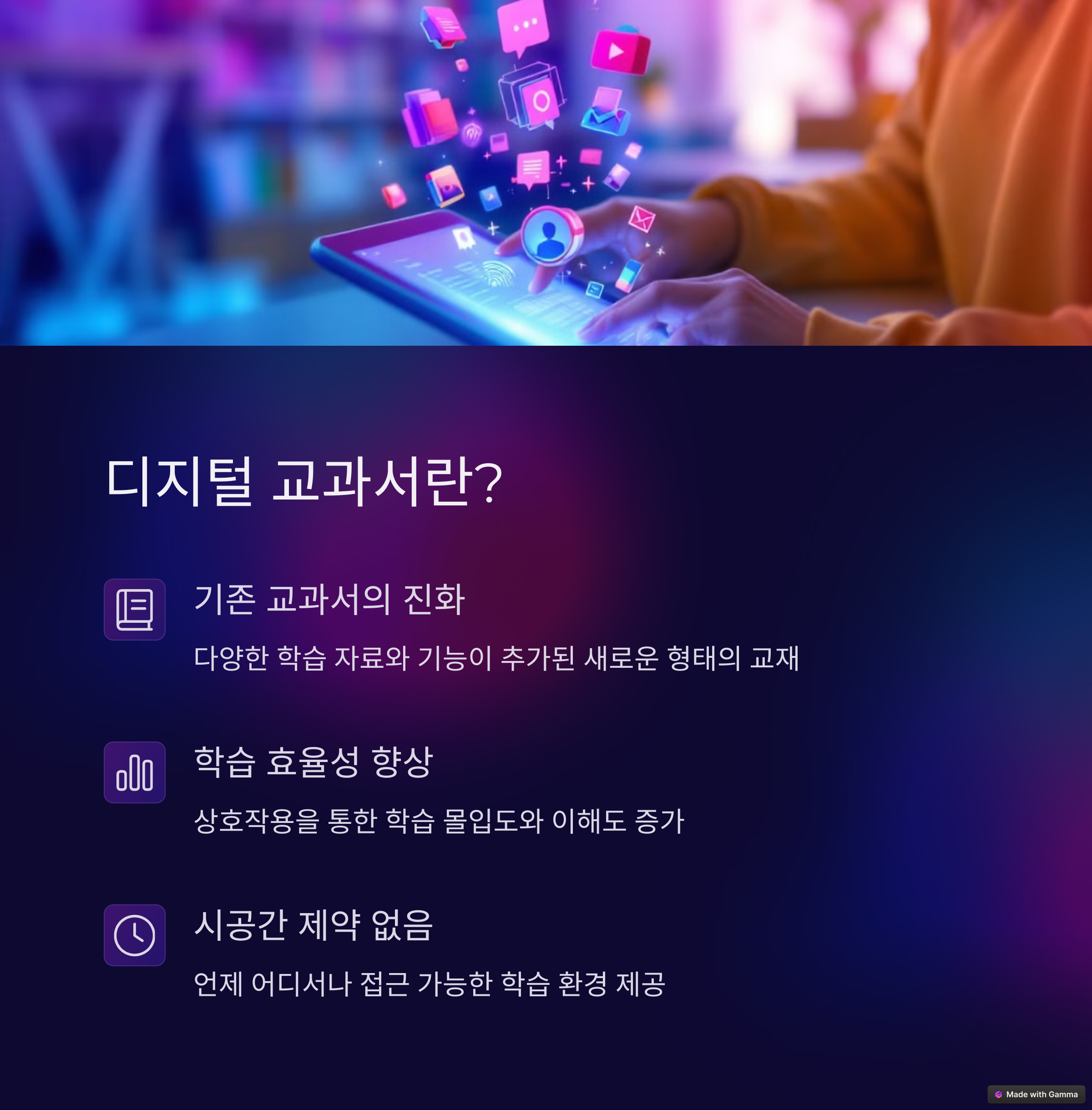 "종이 교과서는 이제 옛말! 디지털 교과서로 학습의 새로운 패러다임을 경험해보세요."