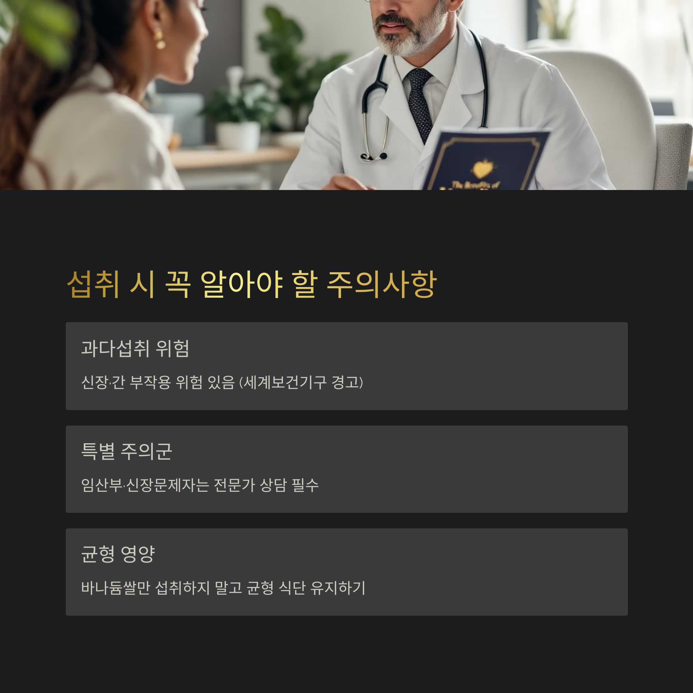 • 과잉 섭취 시 부작용 우려, 권장량 지키기 필수