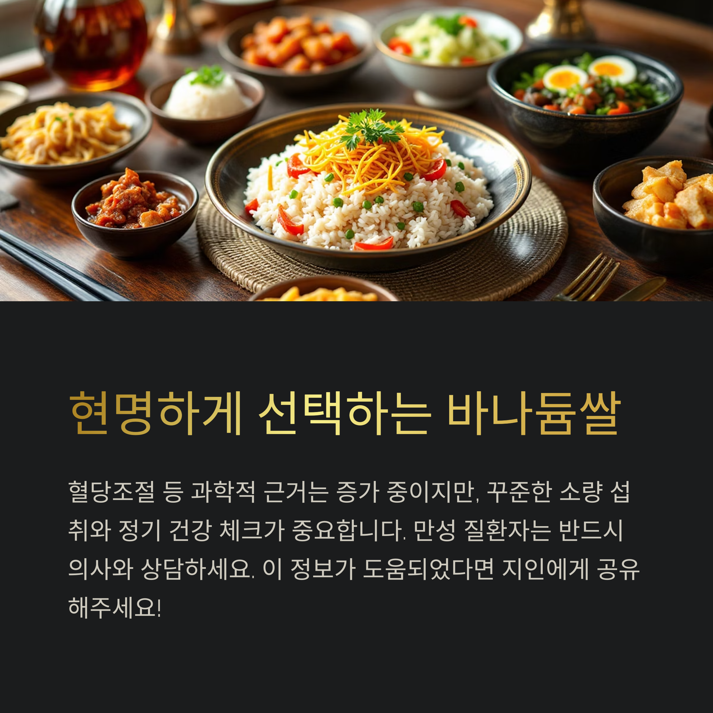 Tags: 바나듐쌀, 혈당조절, 당뇨식단, 기능성쌀, 항산화, 신진대사, 면역력, 체중관리, 뼈건강, 건강한밥상