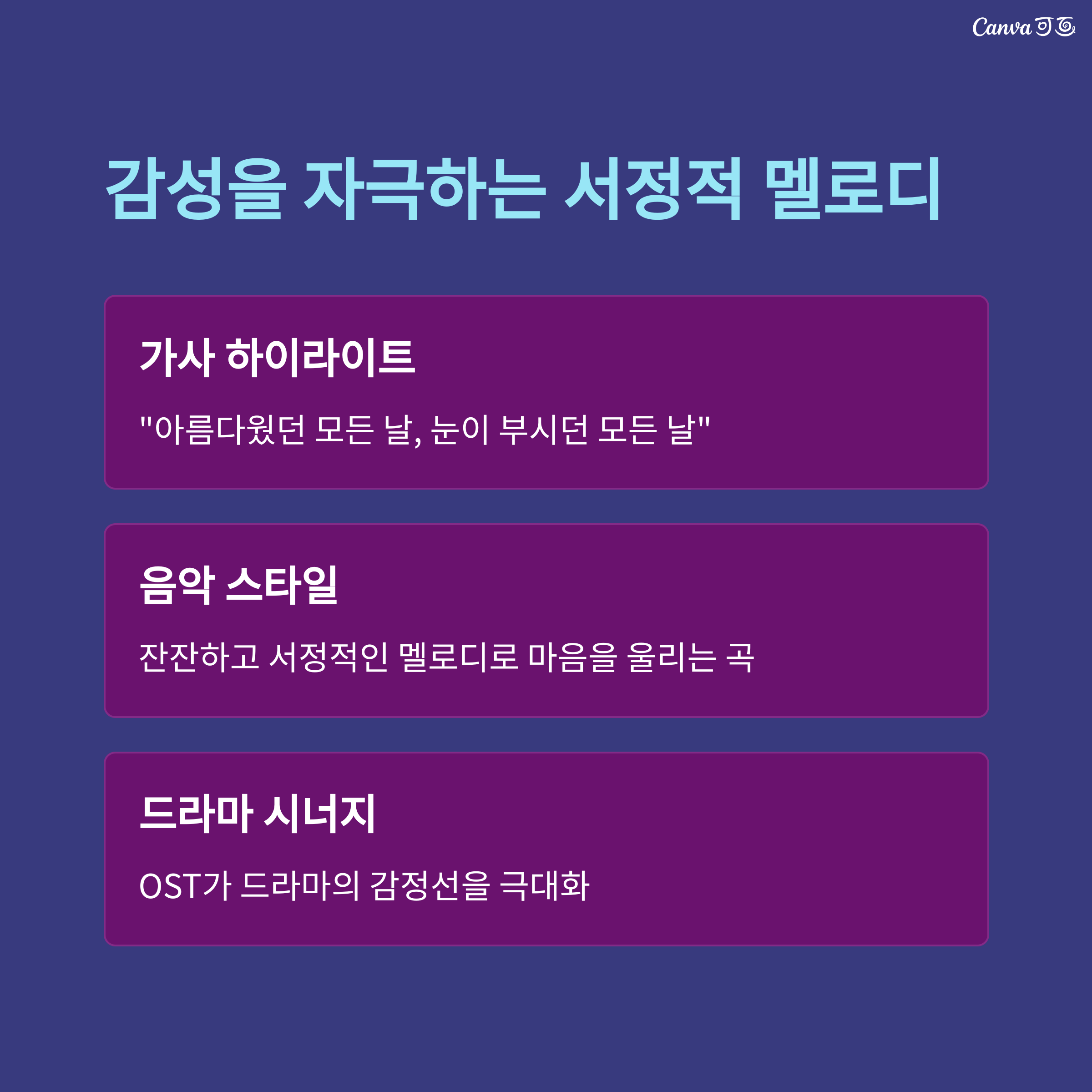 감성적이고 서정적인 발라드로, 드라마의 분위기와 어우러지는 곡입니다.