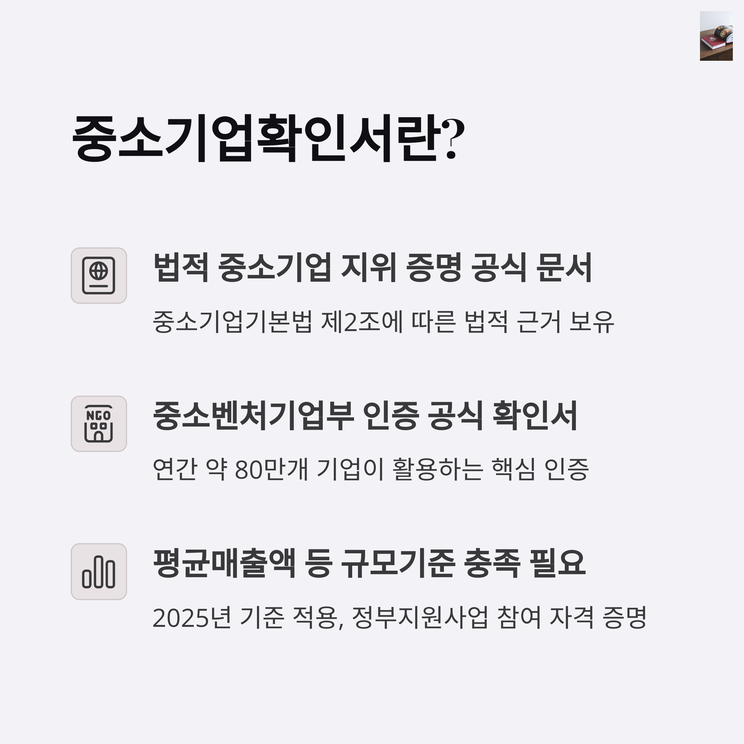 중소기업확인서는 「중소기업기본법」에 따라 해당 기업이 중소기업 요건을 충족했음을 공식적으로 증명하는 서류입니다. 이게 왜 중요하냐고요? 정부 지원사업, 각종 세금 감면, 공공기관 입찰 참여 등 거의 모든 기업 활동에서 이 확인서를 요구하거든요. 실질적으로 ‘우리는 중소기업입니다’라고 외치는 ID카드 같은 존재죠.