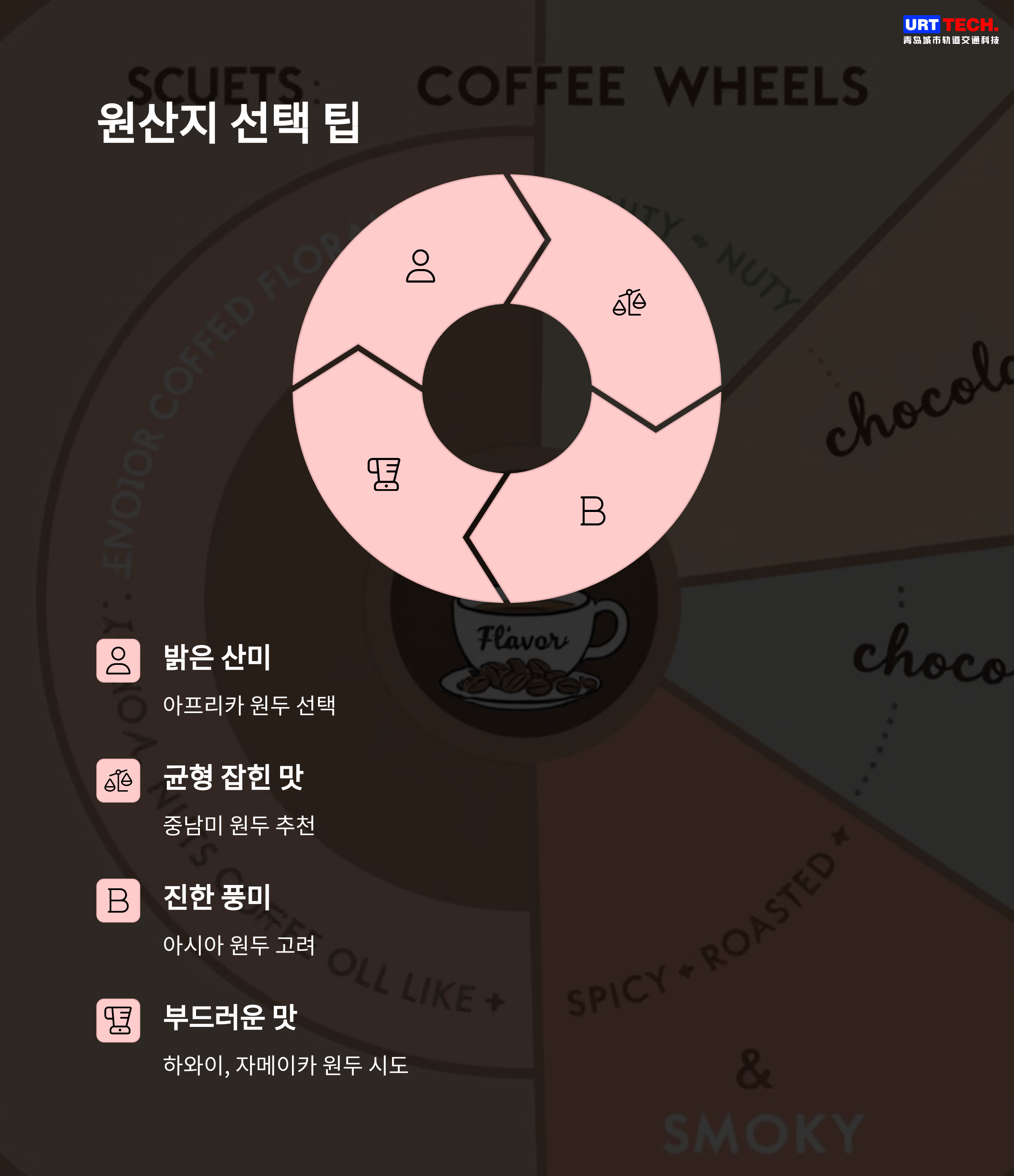 입니다. 아프리카의 꽃향, 중남미의 균형, 아시아의 스파이스, 그리고 기타 지역의 고급스러움까지—커피 한 잔 속에 전 세계가 담겨 있습니다.각 원두의 개성과 향미를 이해하고 즐기며, 자신만의 커피 취향을 찾아보세요. 매일의 일상이 더 풍성해지고, 더 깊은 감각의 시간이 찾아올 것입니다.