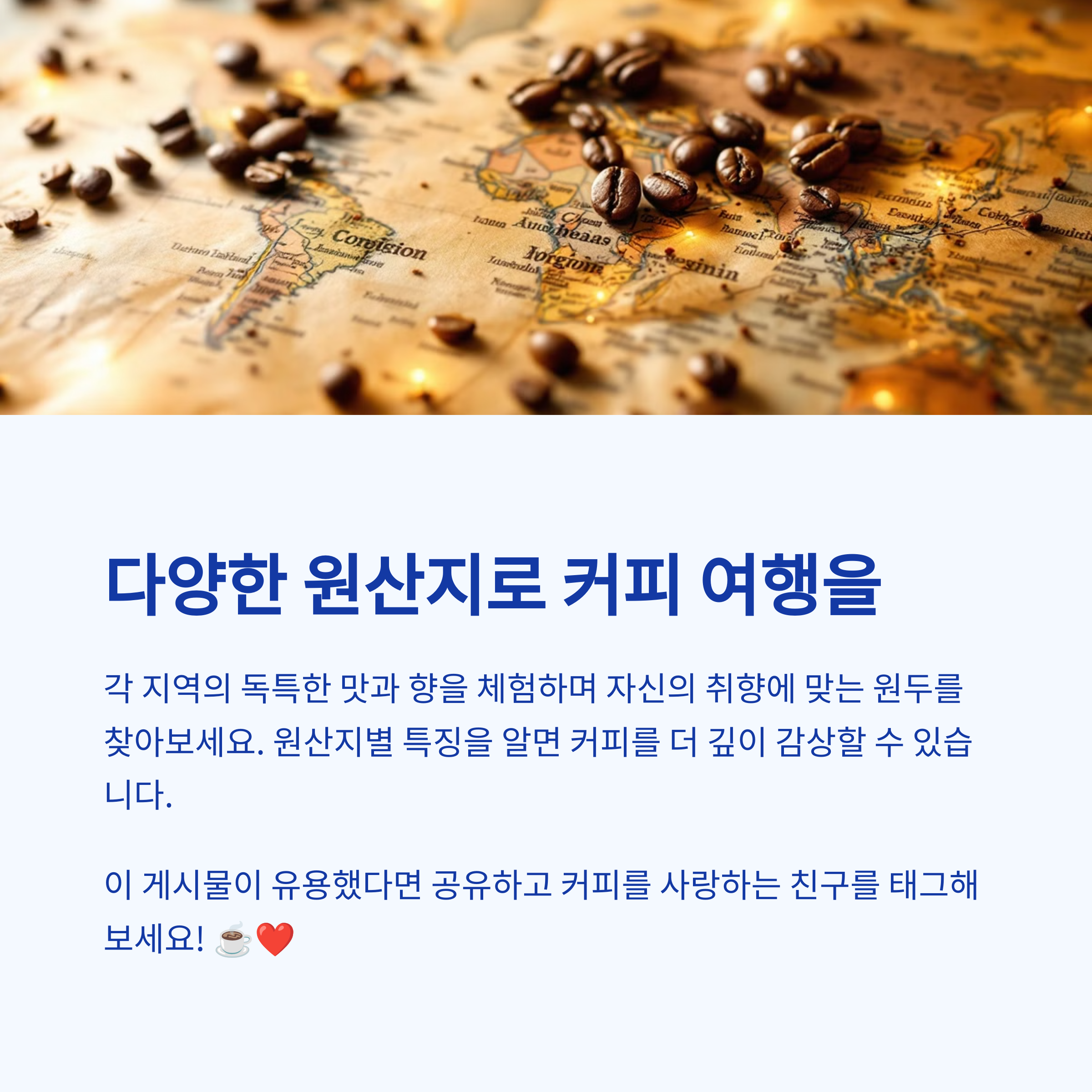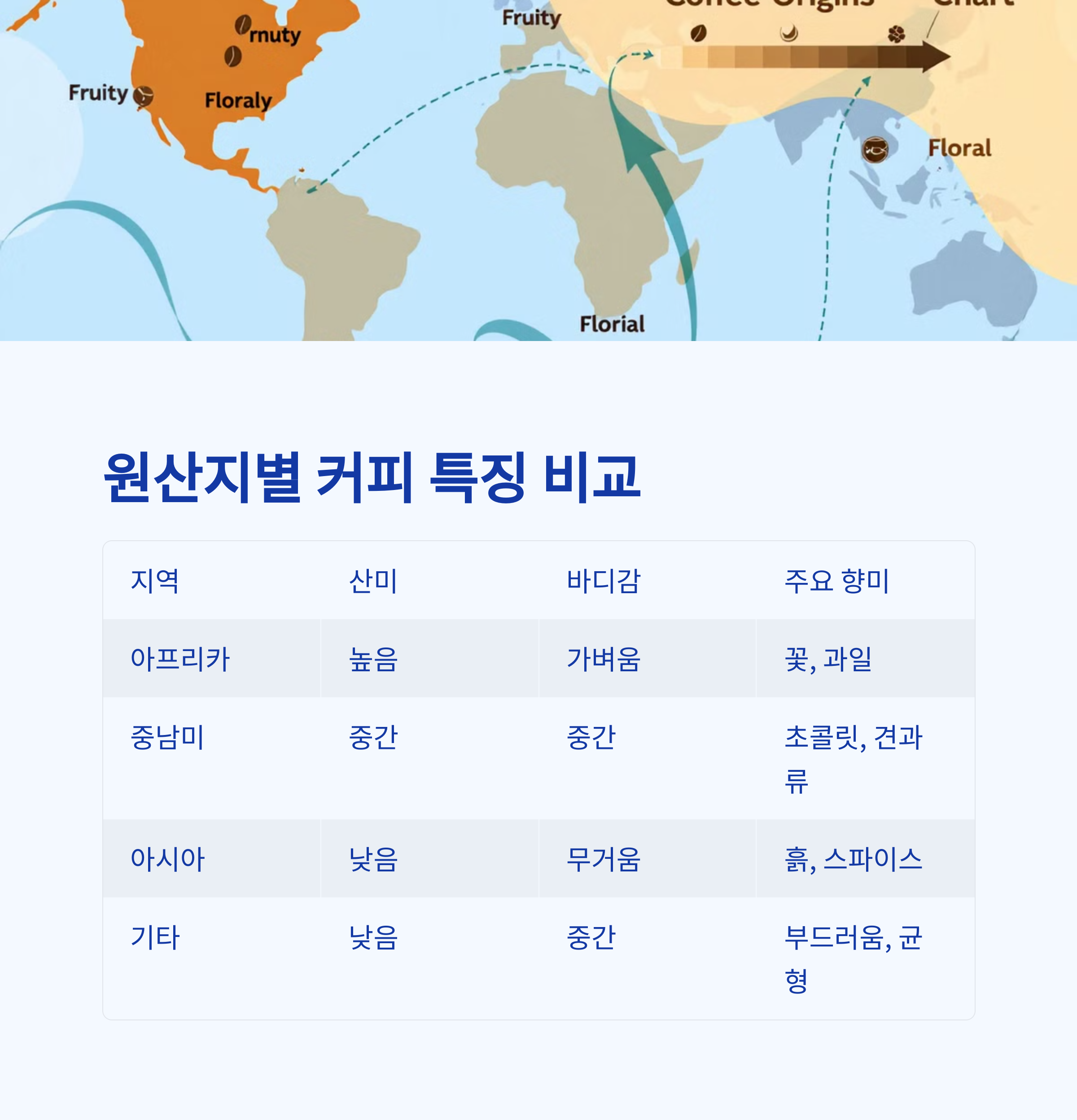 커피는 단순한 음료가 아니라, 원산지에 따라 전혀 다른 풍미를 선사하는 복합적인 경험