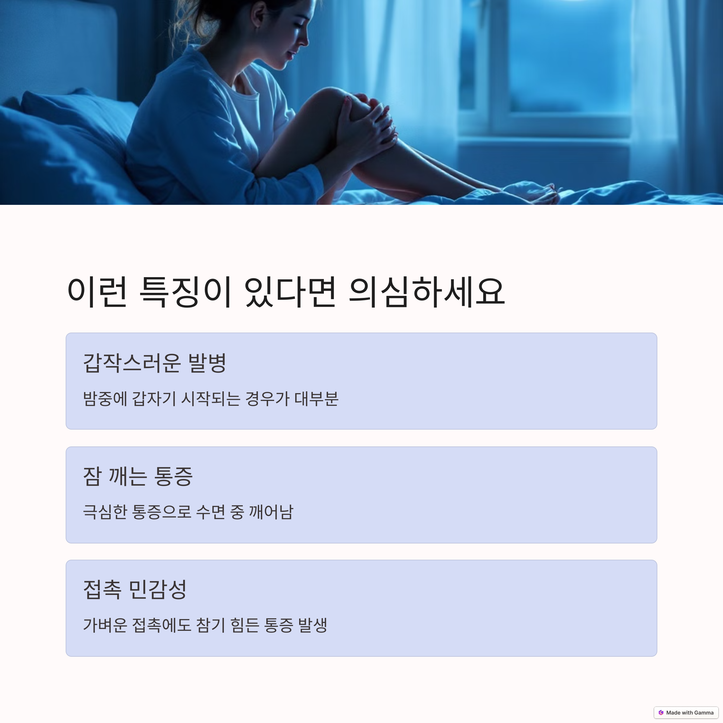 | 야간 통증 | 잠을 깰 정도의 극심한 통증이 밤에 나타남 |