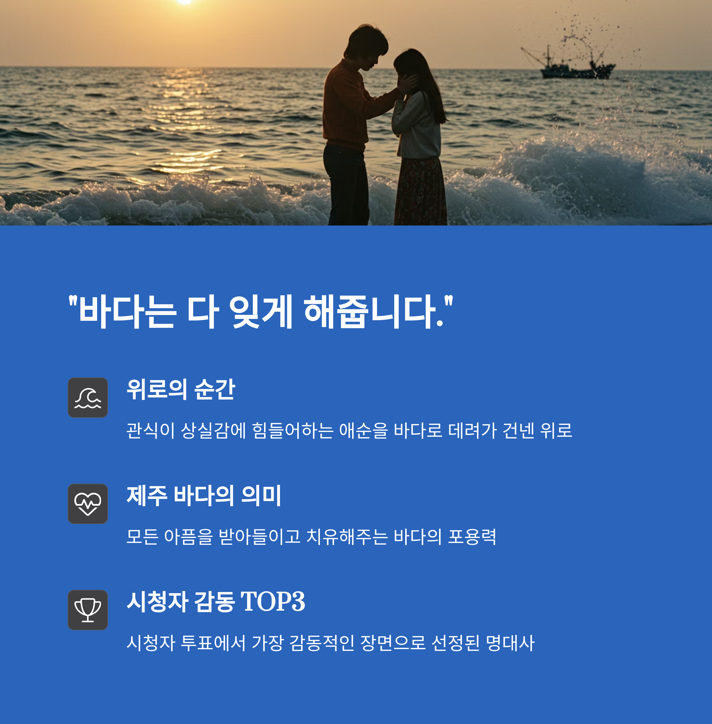 누구나 겪는 상실, 가족, 삶의 무게 같은 공통된 주제를 건드리기 때문이에요. 말은 제주에서 왔지만, 마음은 전국으로 간 거죠.