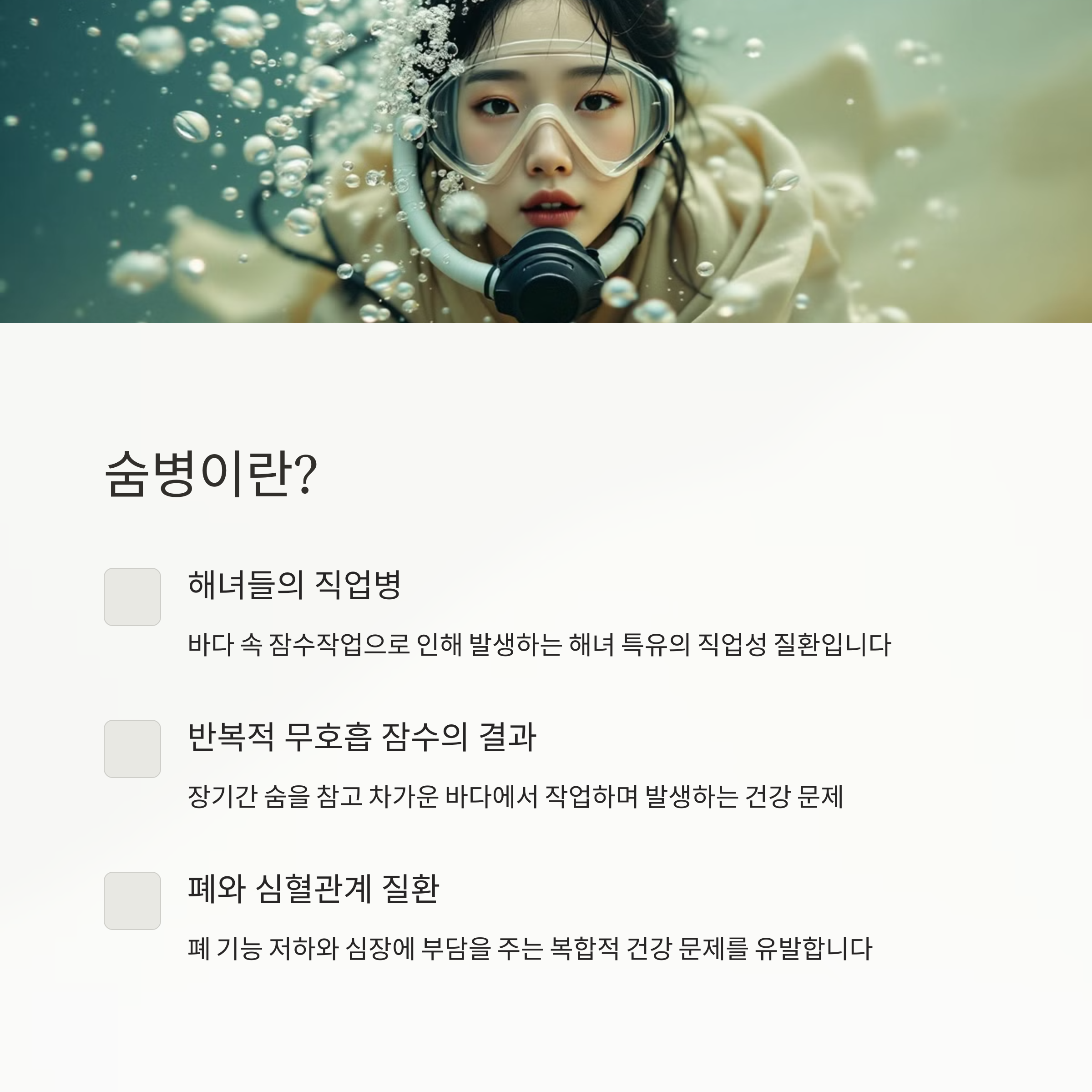 #해녀숨병 #직업병예방 #숨병원인 #해녀건강 #제주해녀문화