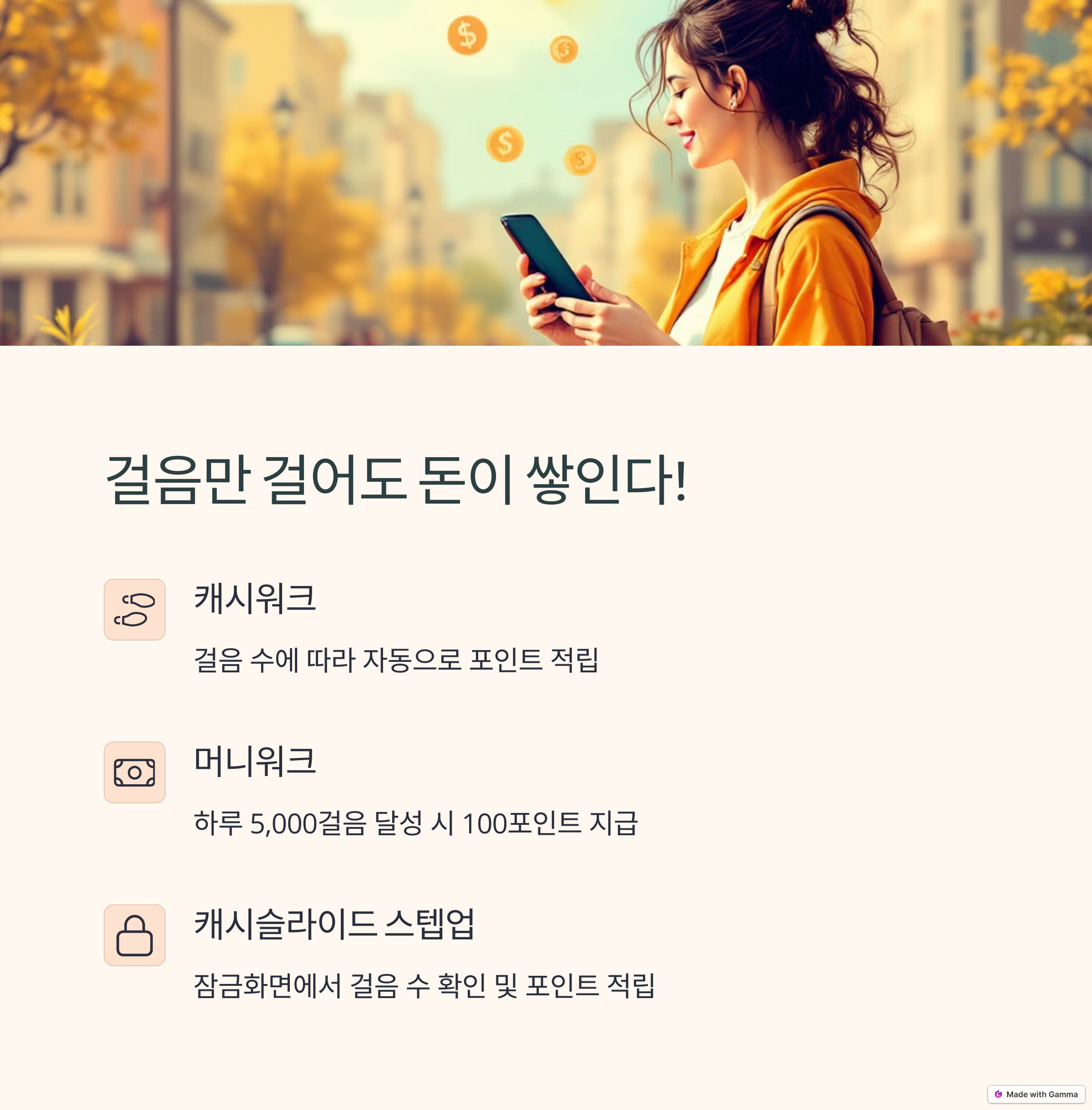 은 잠금화면에 걸음 수가 표시되고, 그걸 확인할 때마다 자동으로 포인트가 적립돼요. 출근길, 등교길, 그냥 폰만 켜도 리워드가 따라오는 느낌?