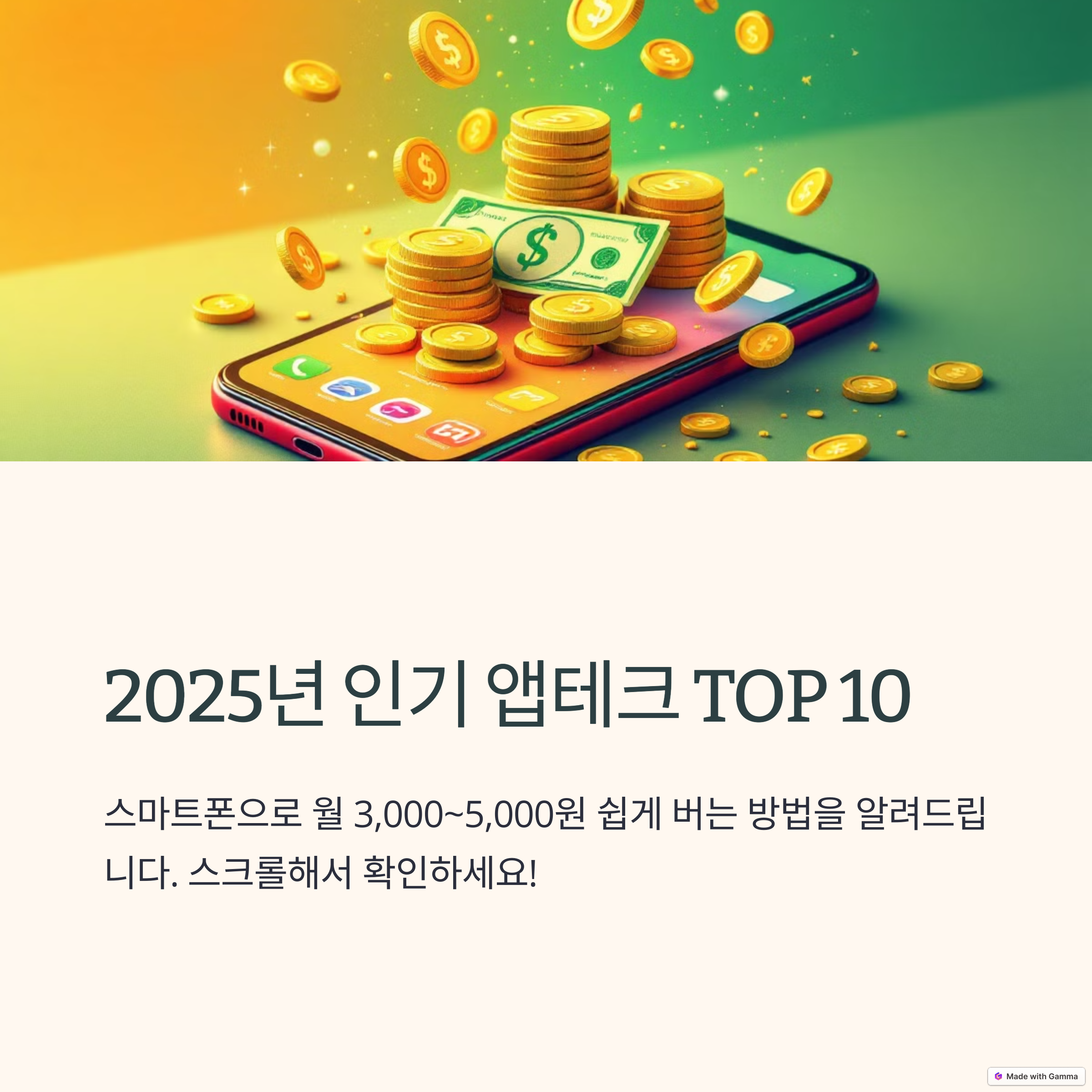 안녕하세요 여러분! 요즘 지출은 늘고 수입은 줄어드는 느낌, 저만 그런 거 아니죠? 점점 빠듯해지는 생활 속에서 조금이라도 수입을 보탤 방법을 찾다가 ‘앱테크’에 빠지게 됐어요. 그냥 스마트폰만 잘 써도 돈이 들어온다는 거, 처음엔 믿기 어려웠지만 해보니까 진짜 되더라구요. 특히 요즘엔 다양한 앱이 생기면서 선택지도 넓어졌는데요, 오늘은 제가 직접 써보고 괜찮았던 ‘돈 버는 앱’ TOP 10을 정리해봤어요. 걸으면서, 광고 보면서, 심지어 키보드만 쳐도 돈이 들어오는 이 신박한 세상, 같이 한번 들여다볼까요?