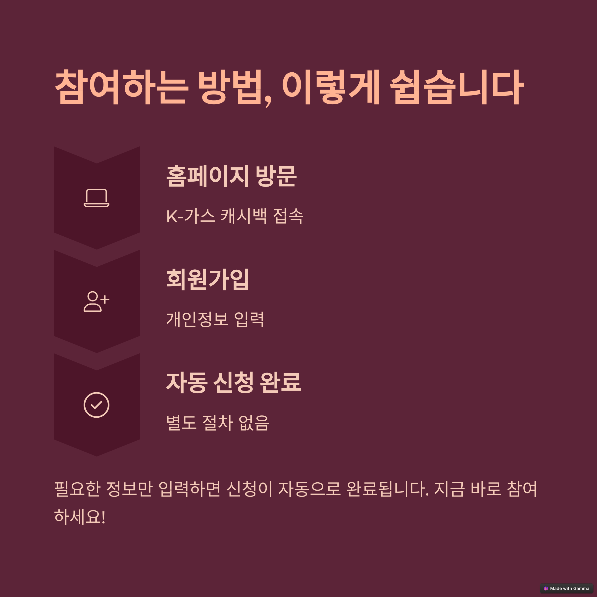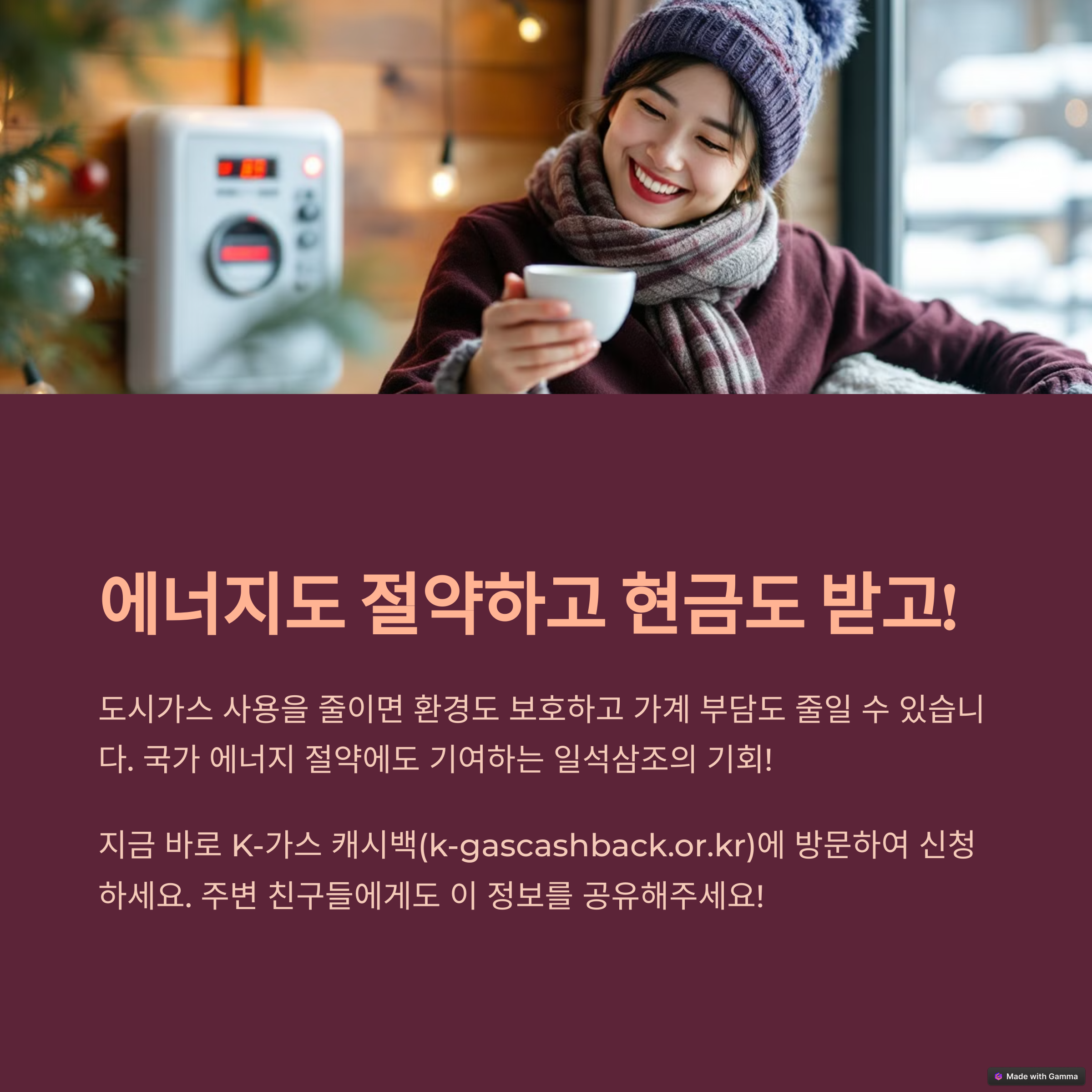 절감 노하우도 어렵지 않습니다. 보일러 온도를 1도만 낮춰도 약 7%의 연료비를 아낄 수 있고, 문풍지, 커튼, 타이머 등을 적절히 활용하면 효과가 더 큽니다. 특히 도시가스 고객식별번호만 있으면 [도시가스 절약 캐시백 공식 사이트](https://k-gascashback.or.kr)에서 간단히 신청할 수 있고, 인증서 로그인도 매우 간편합니다. 참여는 지금이 적기입니다. 마감 전에 서두르세요!